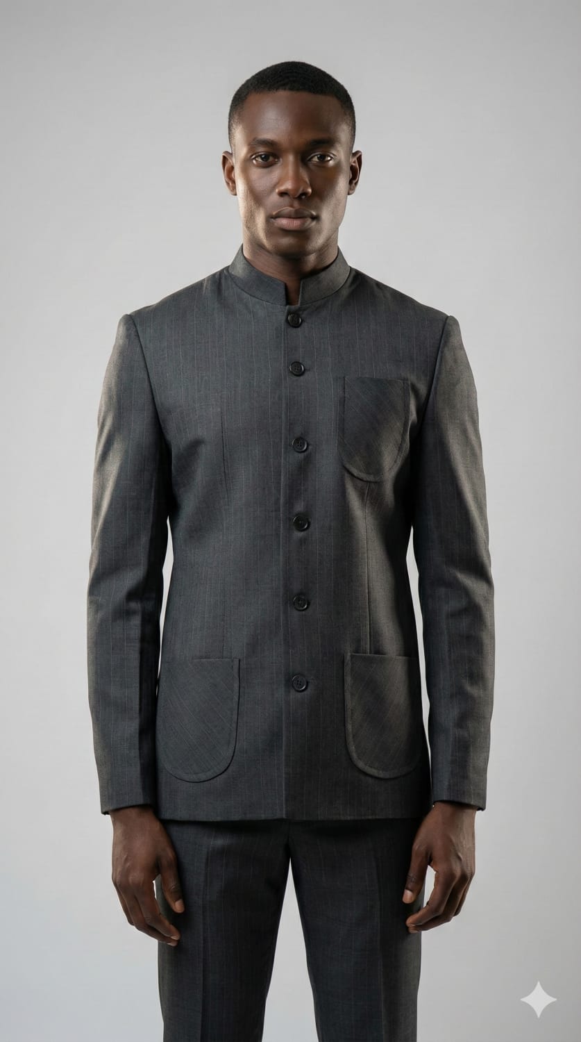 Costume homme moderne gris anthracite col mao ajusté
