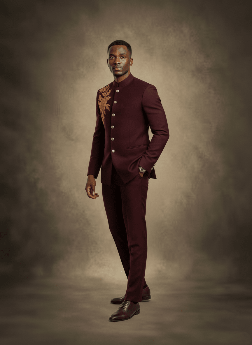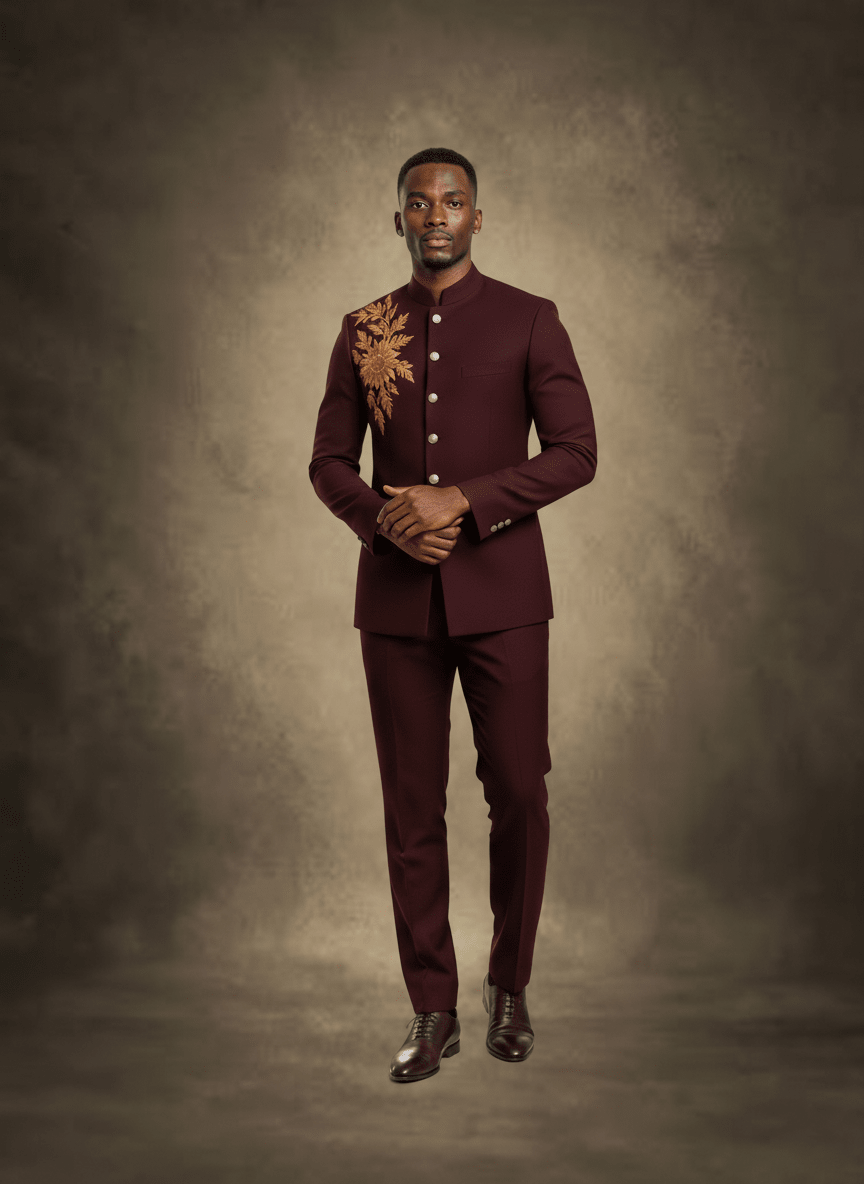 Ensemble Homme Prestige – Élégance Royale & Finition Luxe Cet ensemble pour homme se distingue par son style raffiné et sa touche artistique unique. Confectionné dans un tissu haut de gamme, il offre une coupe moderne et structurée qui sublime la silhouette. Sa veste bordeaux profonde, rehaussée de broderies dorées délicates sur l’épaule, apporte une allure royale et sophistiquée, idéale pour les grandes occasions. Parfait pour les cérémonies, mariages, soirées prestigieuses ou événements formels, cet ensemble incarne la distinction, la classe et la confiance. Caractéristiques : Tissu premium, confortable et durable Coupe moderne et élégante Broderie dorée haut de gamme Style chic et formel Disponible en plusieurs tailles